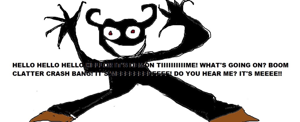 Naturally, I couldn’t help but giggle because demons must have seriously low self-esteem if they have to make a big hubbub whenever they arrive anywhere.