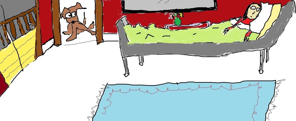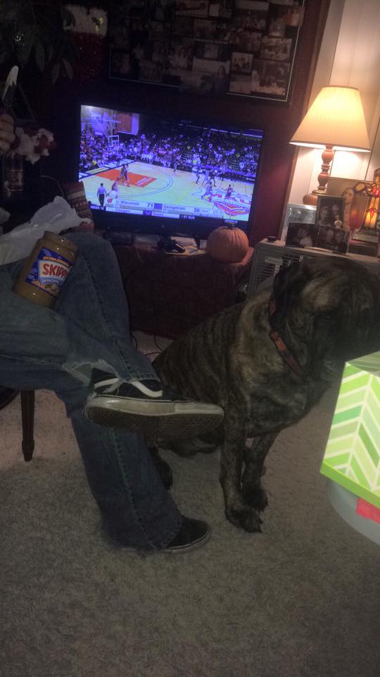 In any case, a few weeks after Mom moved home, David and I were laying on our stomachs on the floor in Mom’s room, watching a Badger basketball game. Mom was asleep behind us in her bed. And Hemi was asleep in her bed which was behind us in the living room.