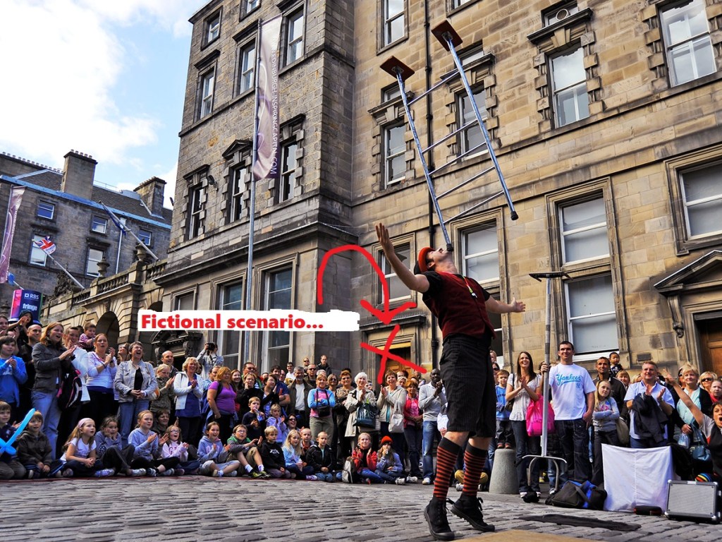 What was most surreal to me is how I would walk out of my university building, leaving behind some of the most serious and intelligent academic people one can find, to then enter the most vulgar and idiotic environment created by the tourist frenzy of the Fringe.