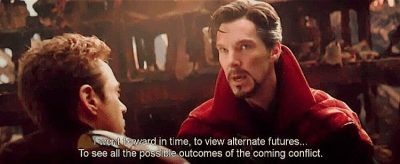 You know, like how Dr. Strange did his witchcraft (or “probability on meth”) in the Marvel movie Infinity War
