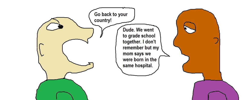 Or when you live in a country you were born in, like America, but aren’t white, you are somehow treated differently.