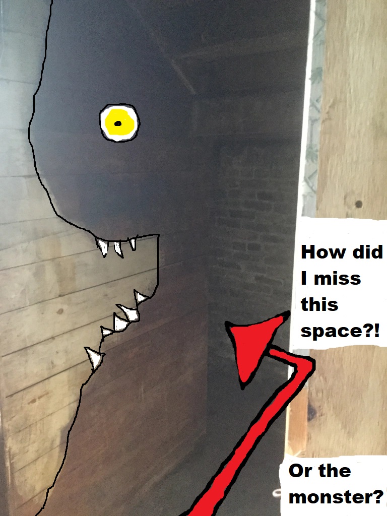 Yeah, I felt it was odd to have missed the somewhat sideshow-looking demented Pac-Man monster face and the space under the stairs.
