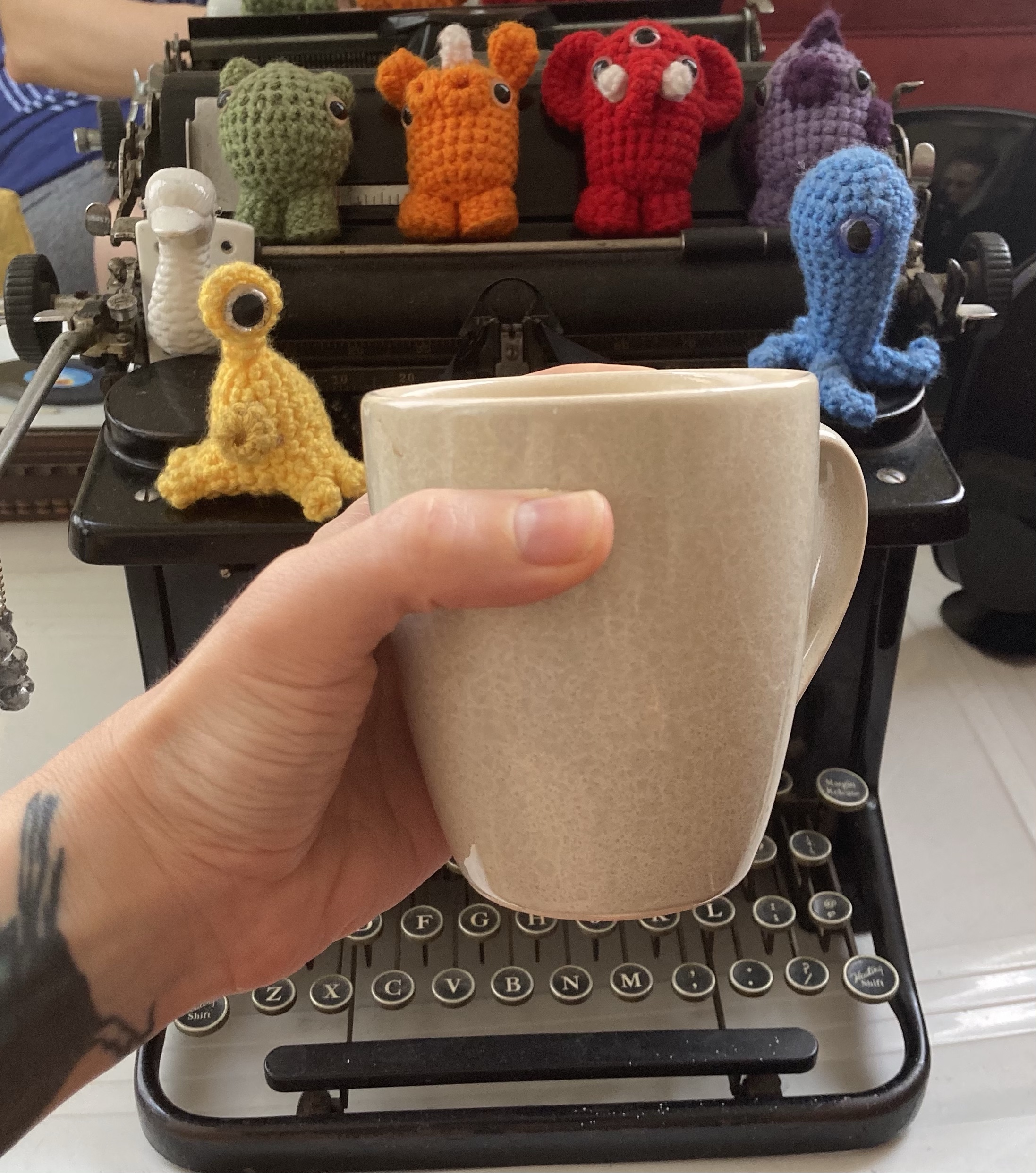 Isn’t it a beauty? The owner of a little eccentric antiques shop that used to exist gave it to me for free one day years ago. Aren’t typewriters comforting?