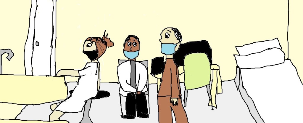 So, as more doctors filed into the room, there I was, in my gown with the back open, sitting there.