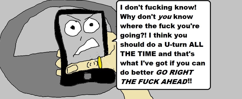 So, while driving on the highway maze Saturday morning, actively navigating the weird interchanges, my smart phone suddenly has a complete meltdown and stops giving rational, helpful directions and starts repeatedly telling me to do a U-turn.