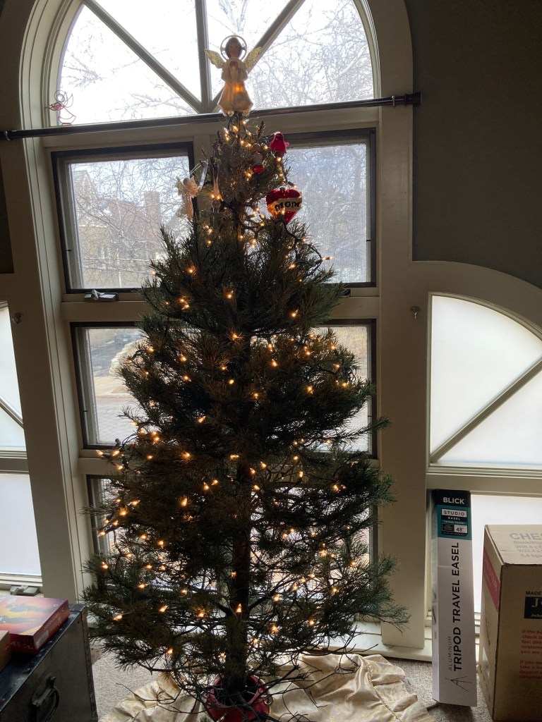 Therefore, as part of my dramatic de-installation of all the Christmas shit, I removed most of our scraggly Christmas tree’s ornaments and all of its rainbow lights, leaving only its white lights, which brought about the Angel Tree far earlier this year than normal.