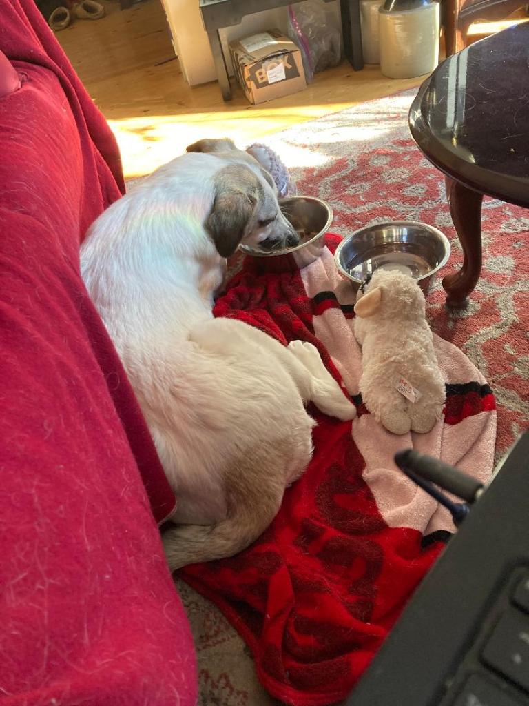 And we’re doing great BUT I’ve been pushing to get another dog. Because presently June is still scared of her food dish.