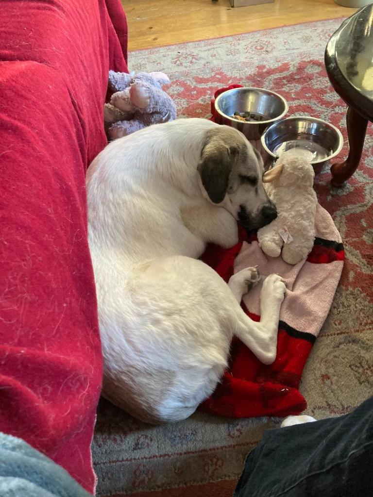 And she is eating different things. A dear friend sent June a Bark Box which had various dog treats and… June, after some time, ate one of all of them.