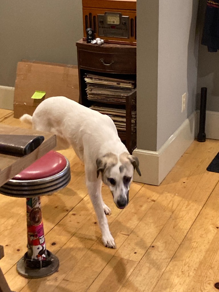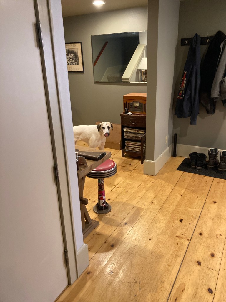 2) AND THEN COMING DOWNSTAIRS TO GREET ME LIKE A NORMAL DOG