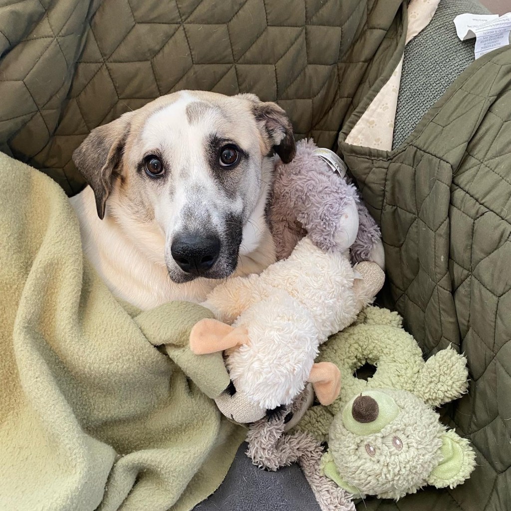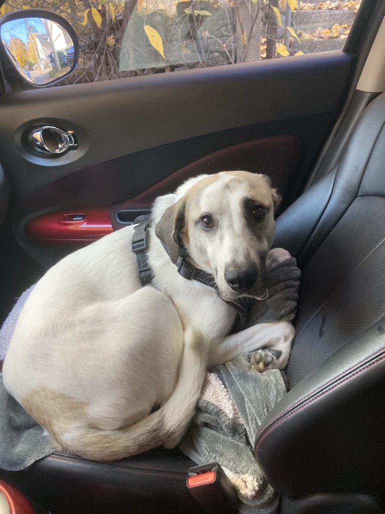 She had been found with a pack of dogs who were supposedly her brothers in a cemetery in Oklahoma which only has kill shelters. So someone reported them and a shelter in Wisconsin drove down to bring them all to Wisconsin for adoption.