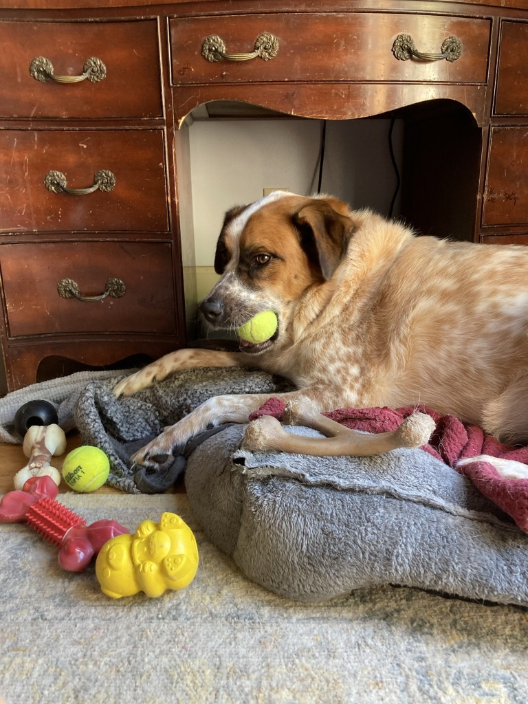 And our vet recently said he is 14 pounds overweight which is funny to us because… HOW. Yet, I bought him diet science food (but he gets such a small amount of June’s Active Dog food we are baffled as to how he has gained weight).